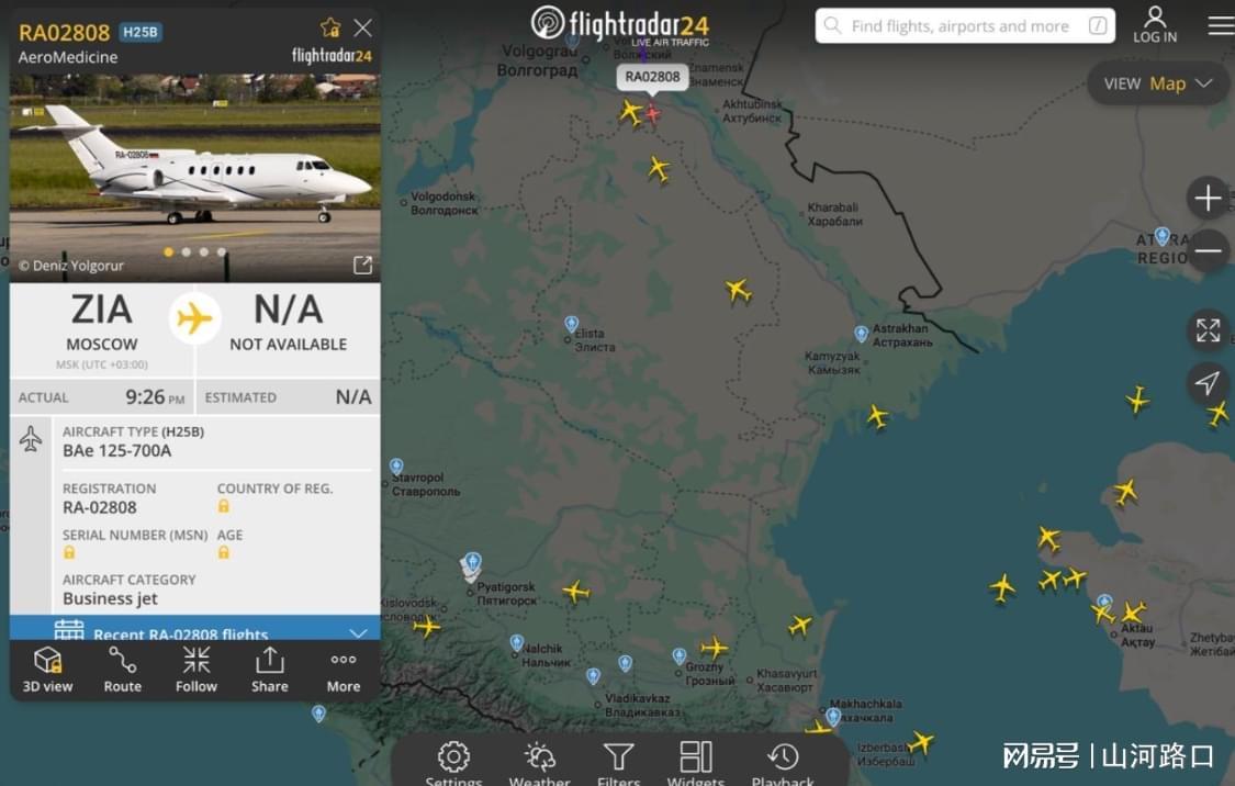 据 Flightradar24显示,一架注册号为 RA-02808 的 BAe 125-700A 型医疗公务机从莫斯科茹科夫斯基机场起飞,向南飞行。